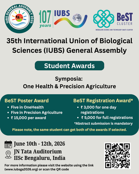 The 35th General Assembly of IUBS will be held at the National Science Seminar Complex, Indian Institute of Science, Bengaluru, India.